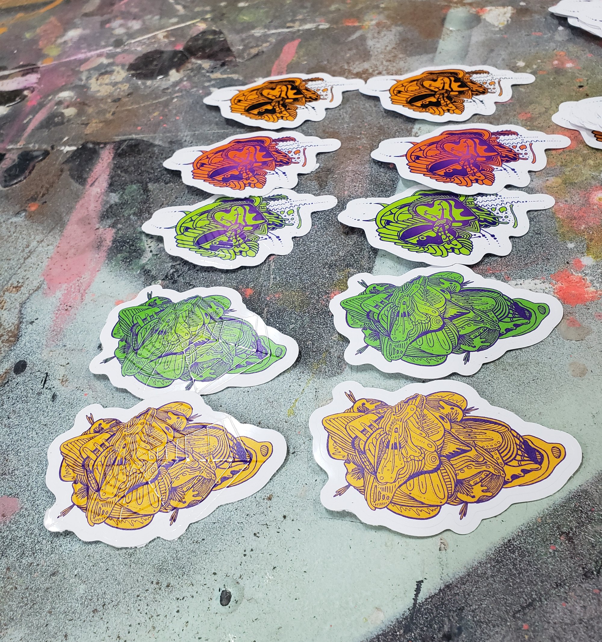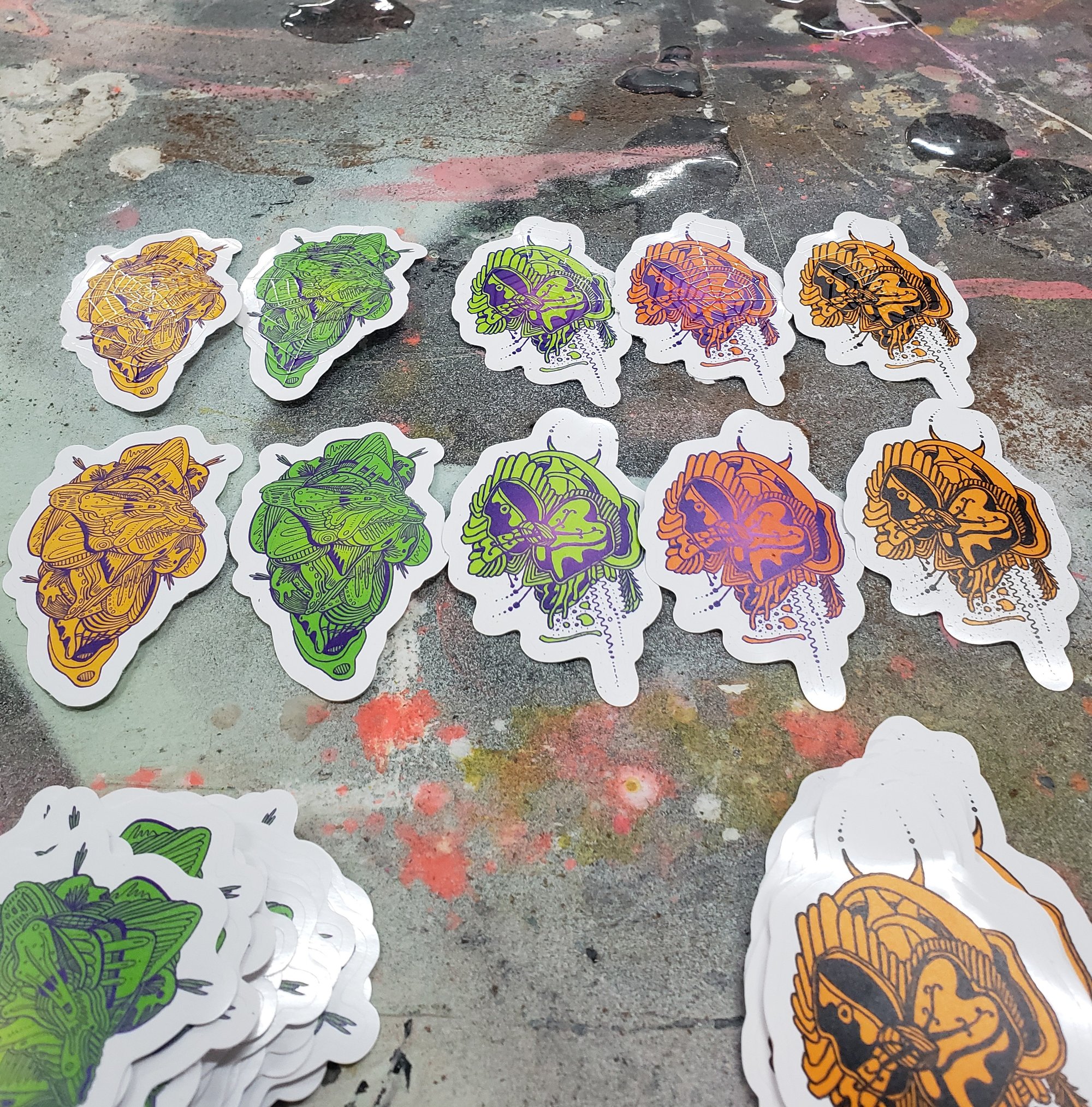 New color ways and textures on the Astro and Head Wheel designs!! Fifteen dollars gets you 10 stickers plus some free goodies for participating.